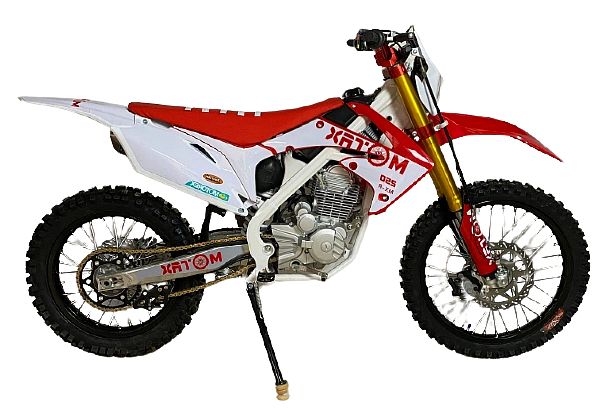 Мотоцикл Motax MXR 250 - усовершенствованый внедорожный байк с 1-цилиндровым 4-тактным мотором. Объем двигателя 250 см куб. Внедорожные колеса отлично справляются с маршрутами по пересеченной местности. Диаметр передних колес 21 дюйм, задних 18 дюймов. Модель оснащена дисковой гидравлической тормозной системой. Благодаря прочной и качественной раме из стали максимальная нагрузка достигает 150 кг. Двойная амортизация за счет передней вилки и заднего моноамортизатора сглаживает ярко выраженные неровности пути, также отлично отрабатывает кочки и позволяет совершать прыжки.